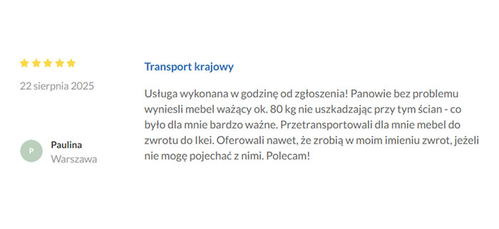 O wskazanej godzinie przyjeżdża specjalistyczny samochód z ekipą. Ostrożnie ładujemy, przewozimy i rozładowujemy.